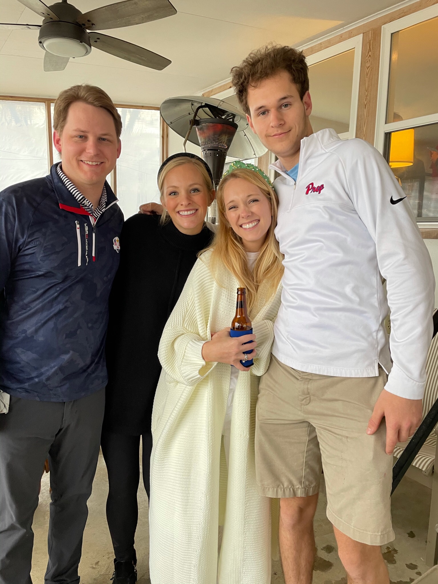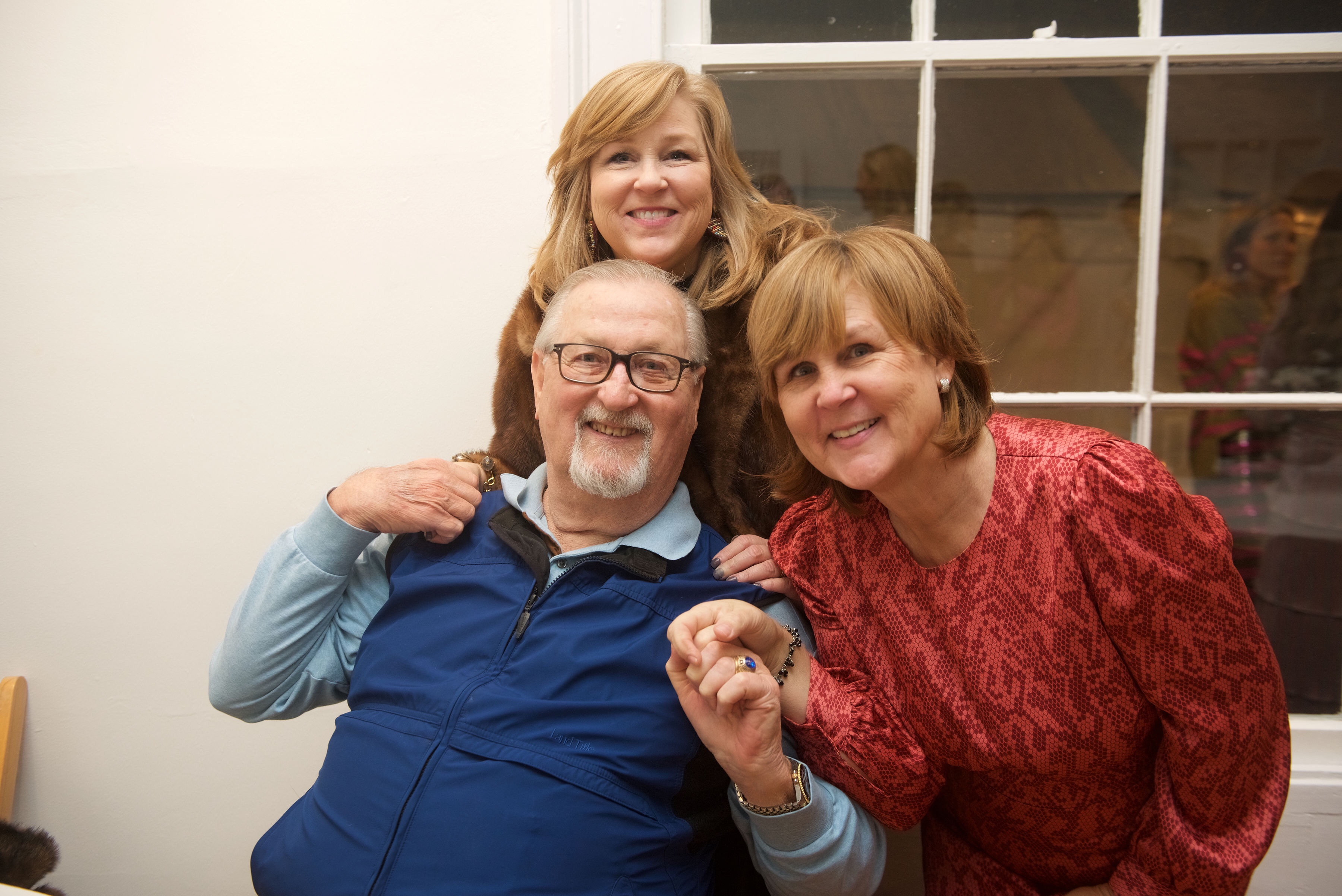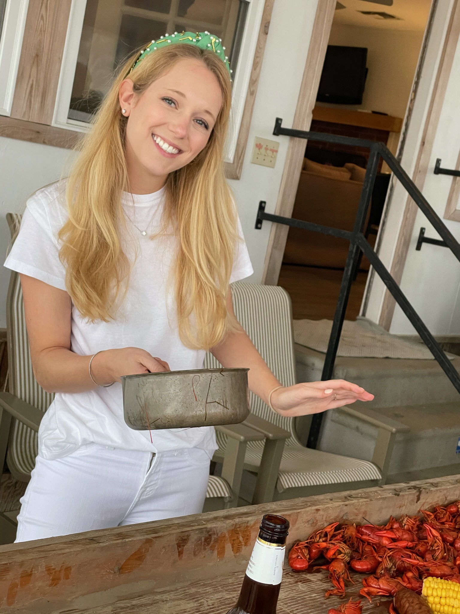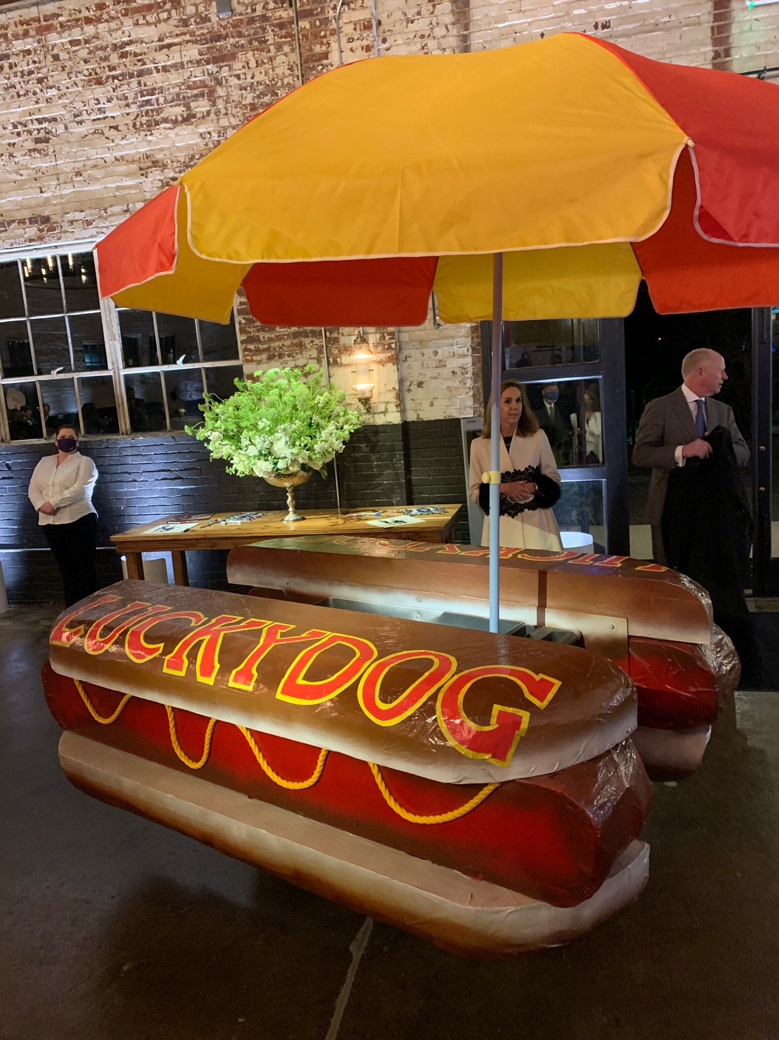 Following the ceremony, the bride’s parents hosted a reception for wedding party and family at The Raymond on the historic square in Raymond, Mississippi. After the couple’s first dance to “You Make Loving Fun” by Fleetwood Mac, sung by Kate Teague, guests were entertained by the Patrick Harkins band. The three-tiered traditional bride’s cake featured a smooth cream cheese frosting. It was displayed on a large silver pedestal adorned with white roses and displayed under a floral wrapped industrial chandelier. The bridegroom’s cake was a five-tiered display of Manny Randazzo’s King Cake from New Orleans.