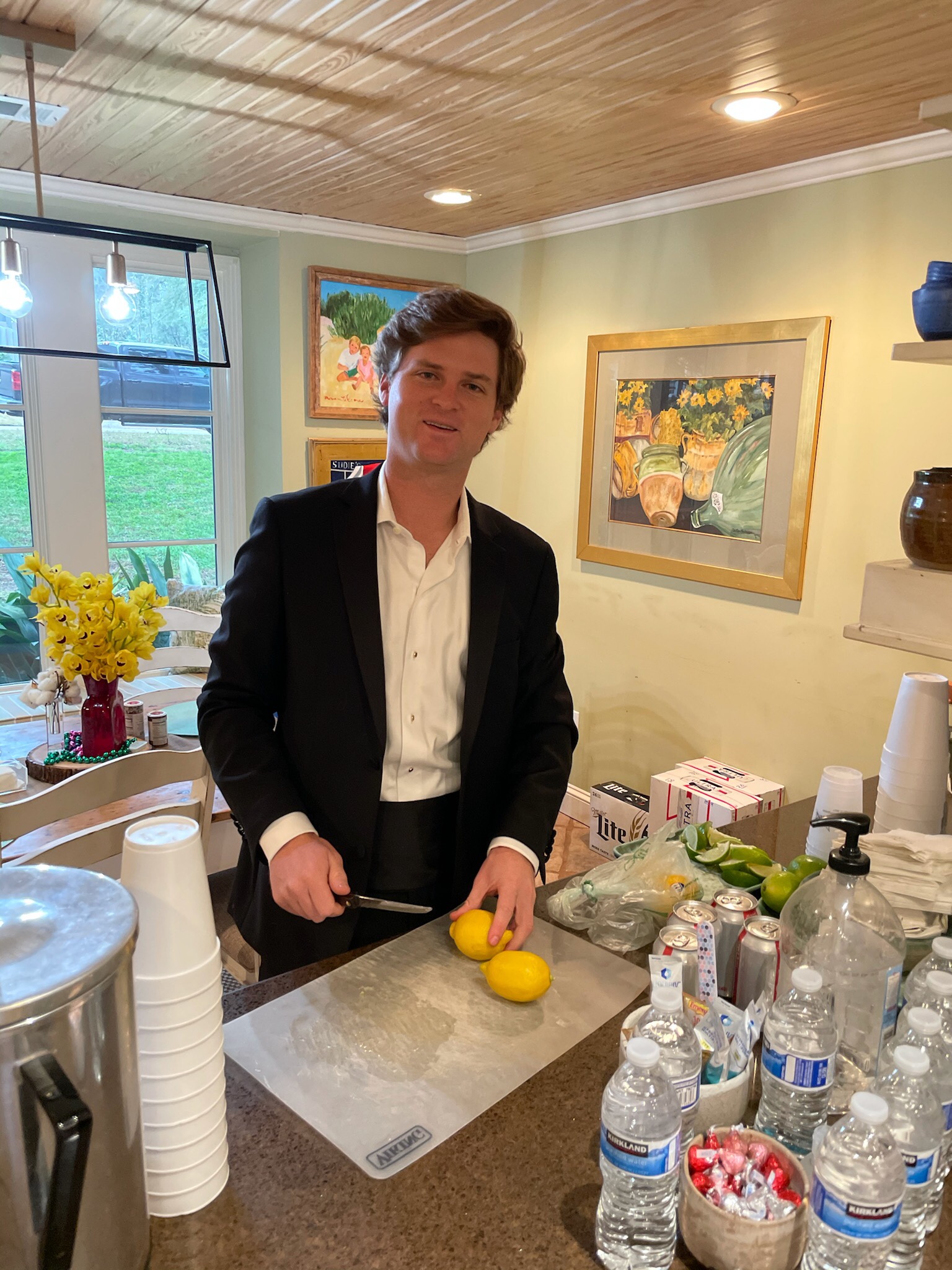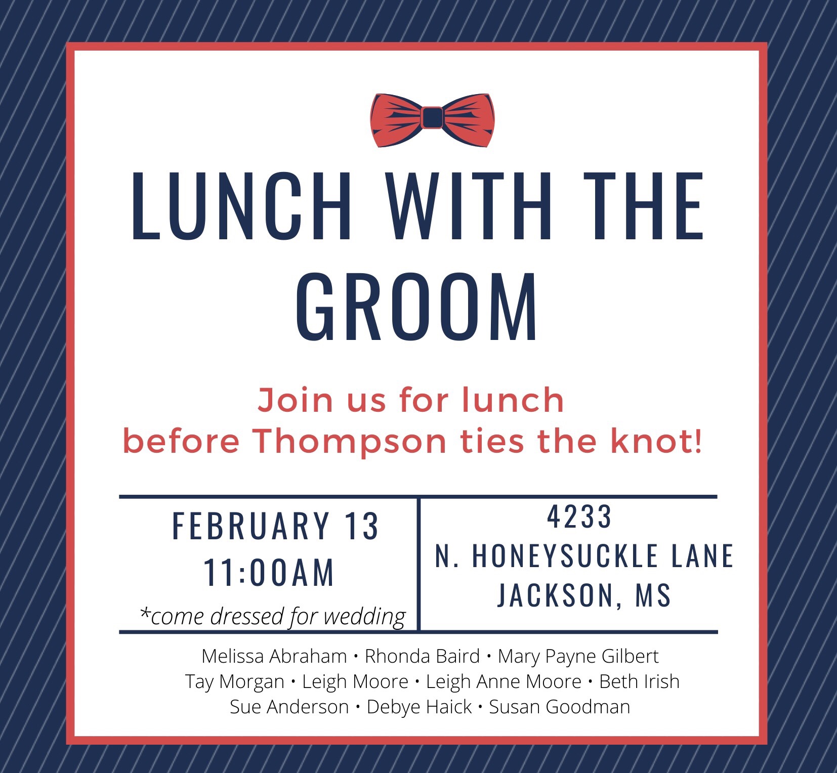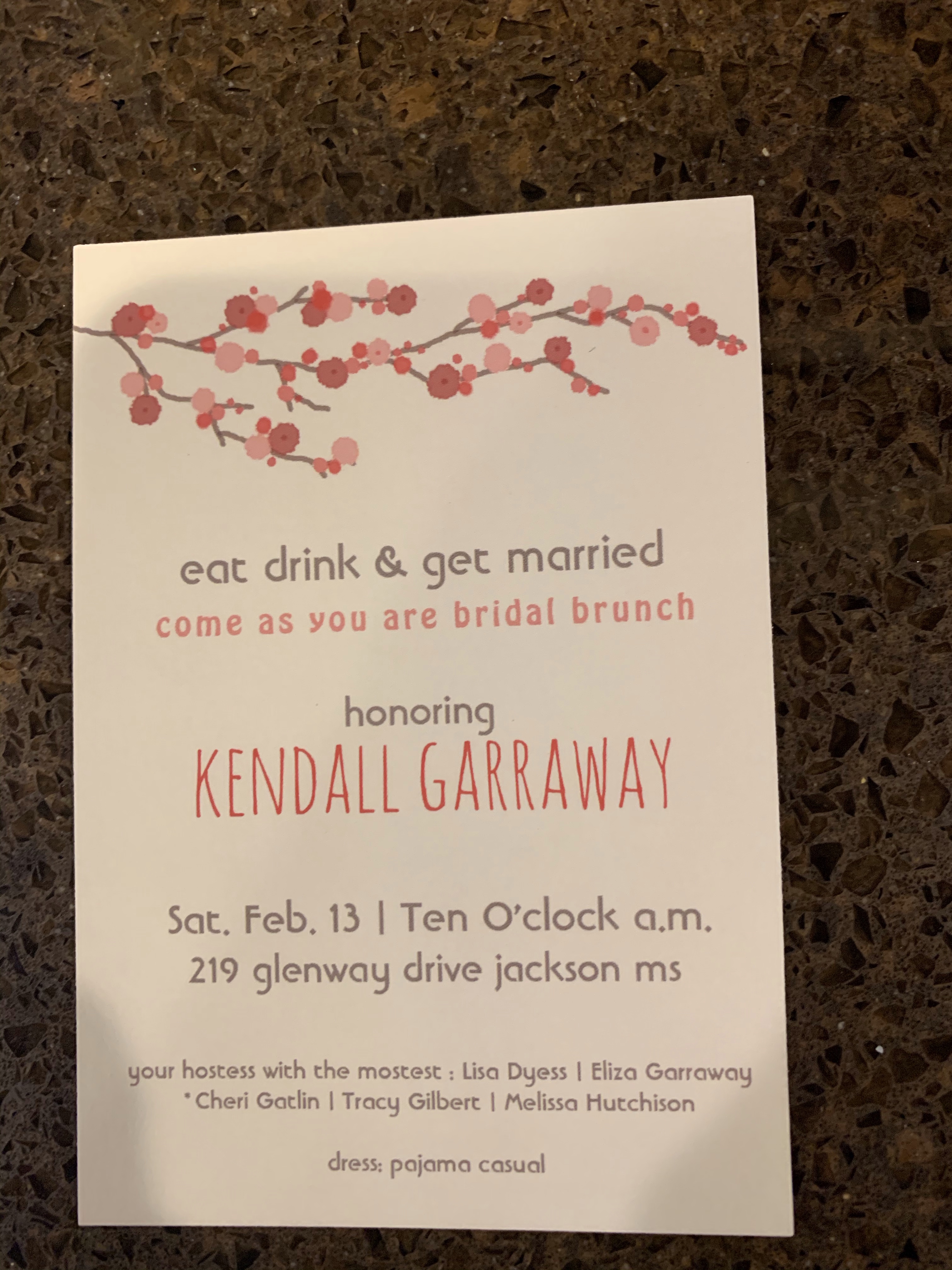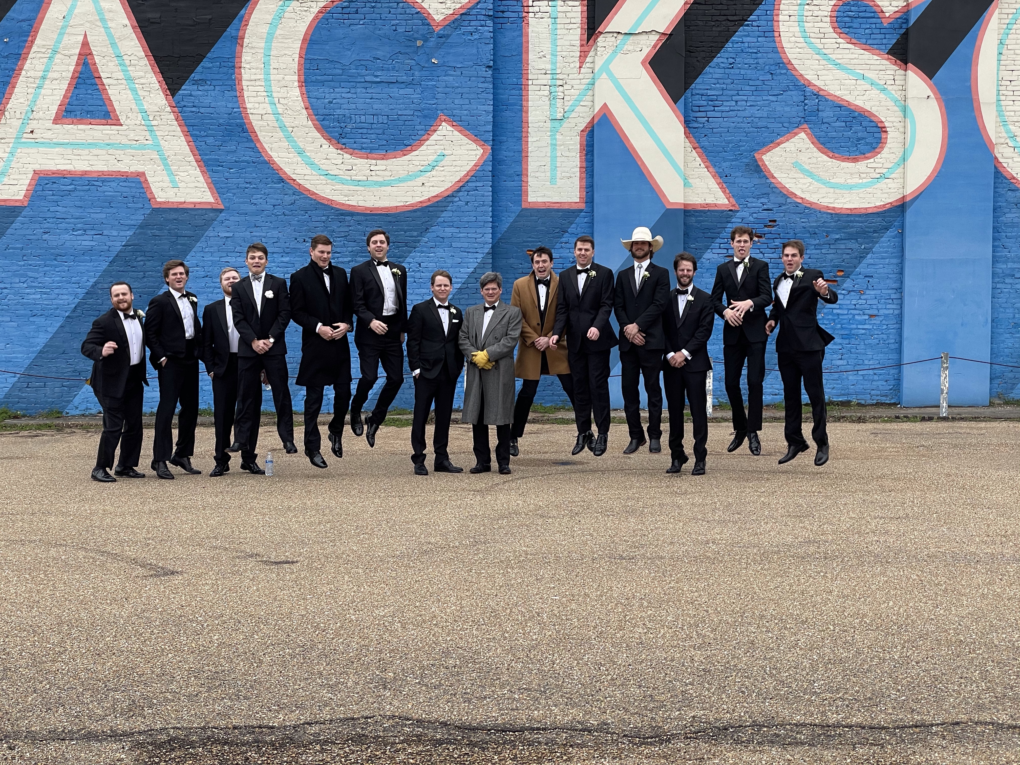 On the eve of the wedding, the bridegroom’s parents hosted a rehearsal dinner fish fry for the wedding party and family at The Cedars in Jackson. Travelin’ Jane provided the entertainment. The bridal brunch on the day of the wedding was cherry blossom themed, paying homage to the newlyweds home, Washington, D.C.