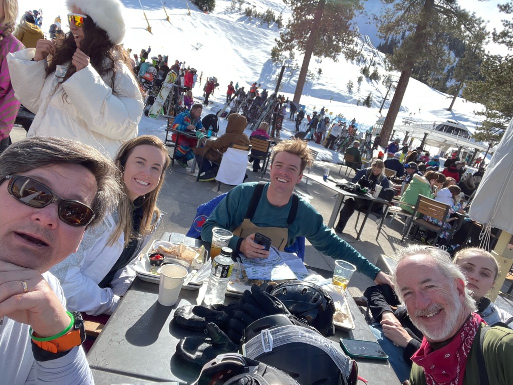 Next day sking. We skied our way across the mountain toward High Camp. Up at High Camp there is an Olympic museum and an ice skating rink! We ate lunch up there at The Granite Bistro. https://www.palisadestahoe.com/events-and-activities/dining-and-apres/granite-bistro. There is an aerial tram that you can take or just ski there. We did both. It’s at 8200 elevation. Here are a Few sking pics! We ate dinner that night at Garwoods https://www.garwoods.com/ and I’m still thinking about the hot salted breadsticks with whipped butter on the table!